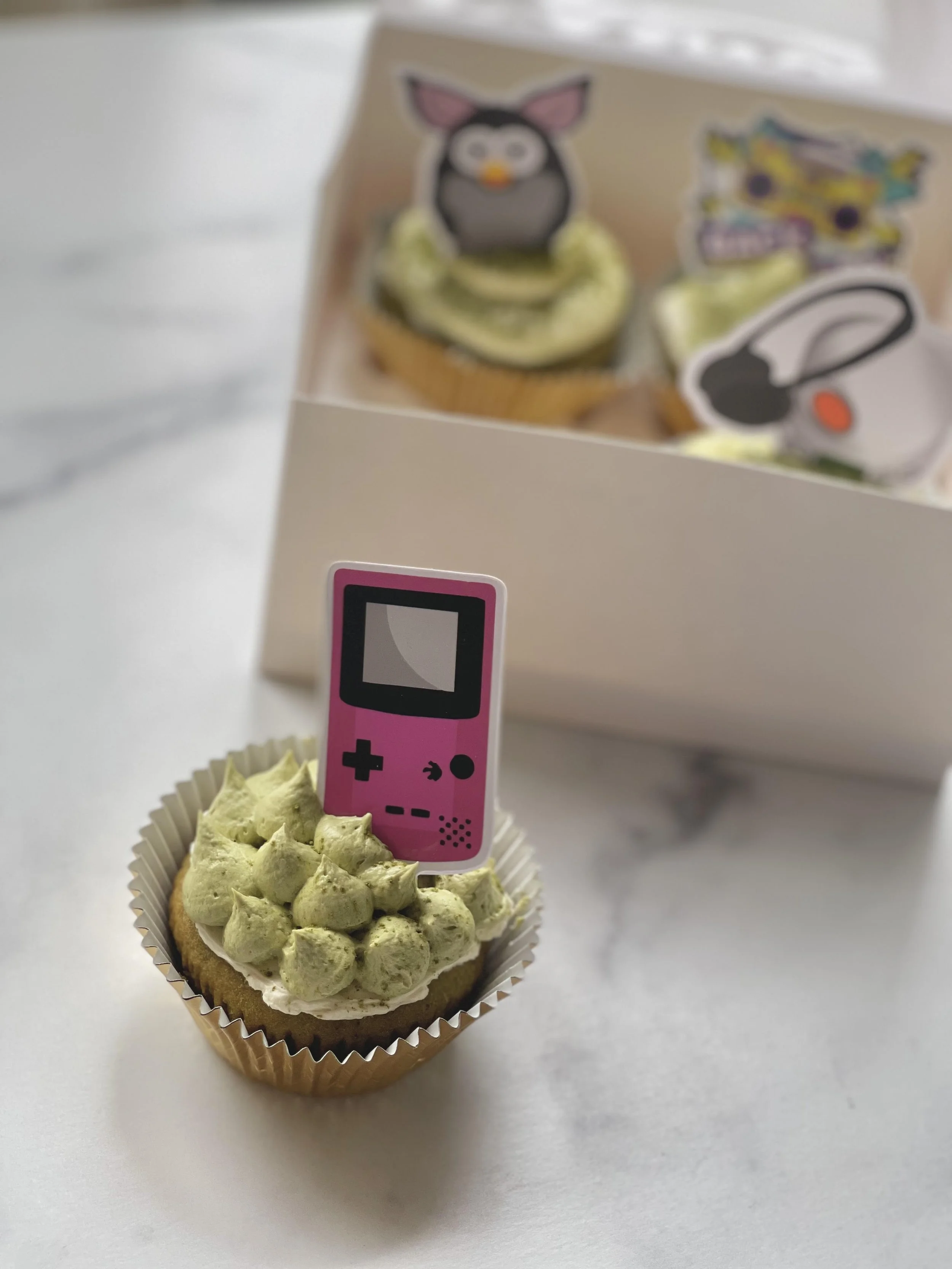 90s Themed Honey Matcha Cupcakes – that Game Boy!