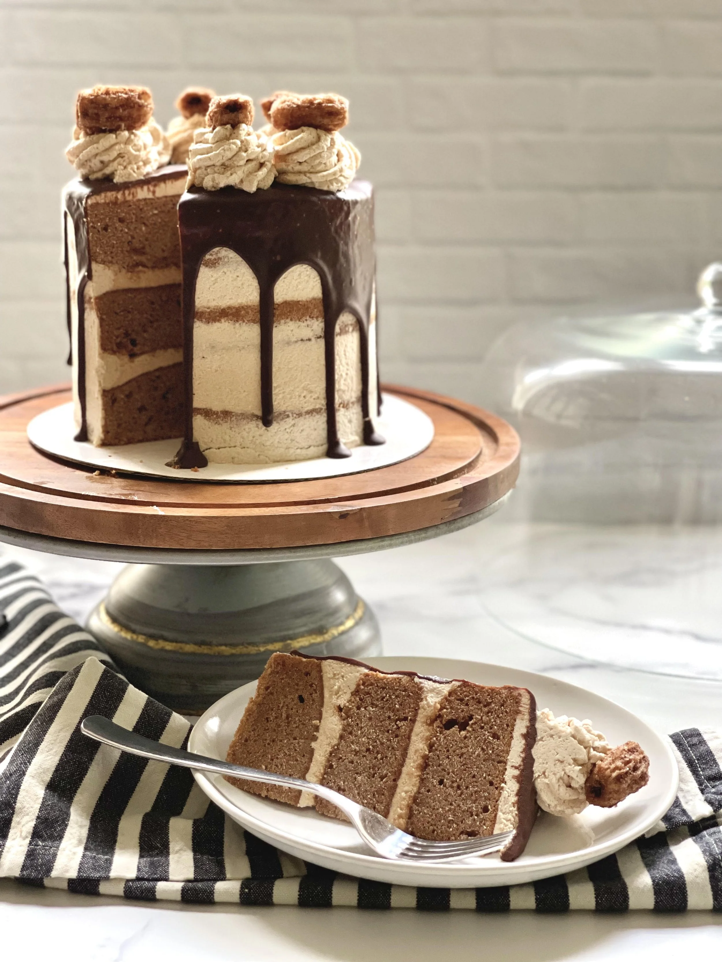 The cinnamon cake is made using a lighter version of the cake recipe I use to make my salted caramel cake, with less brown sugar and a hefty dose of cinnamon. I sprinkle cinnamon sugar (made with canela - Mexican cinnamon - and Lakanto's golden monk fruit sugar) on the buttercream layers for an extra churro punch between cake and churro cream cheese buttercream layers.
